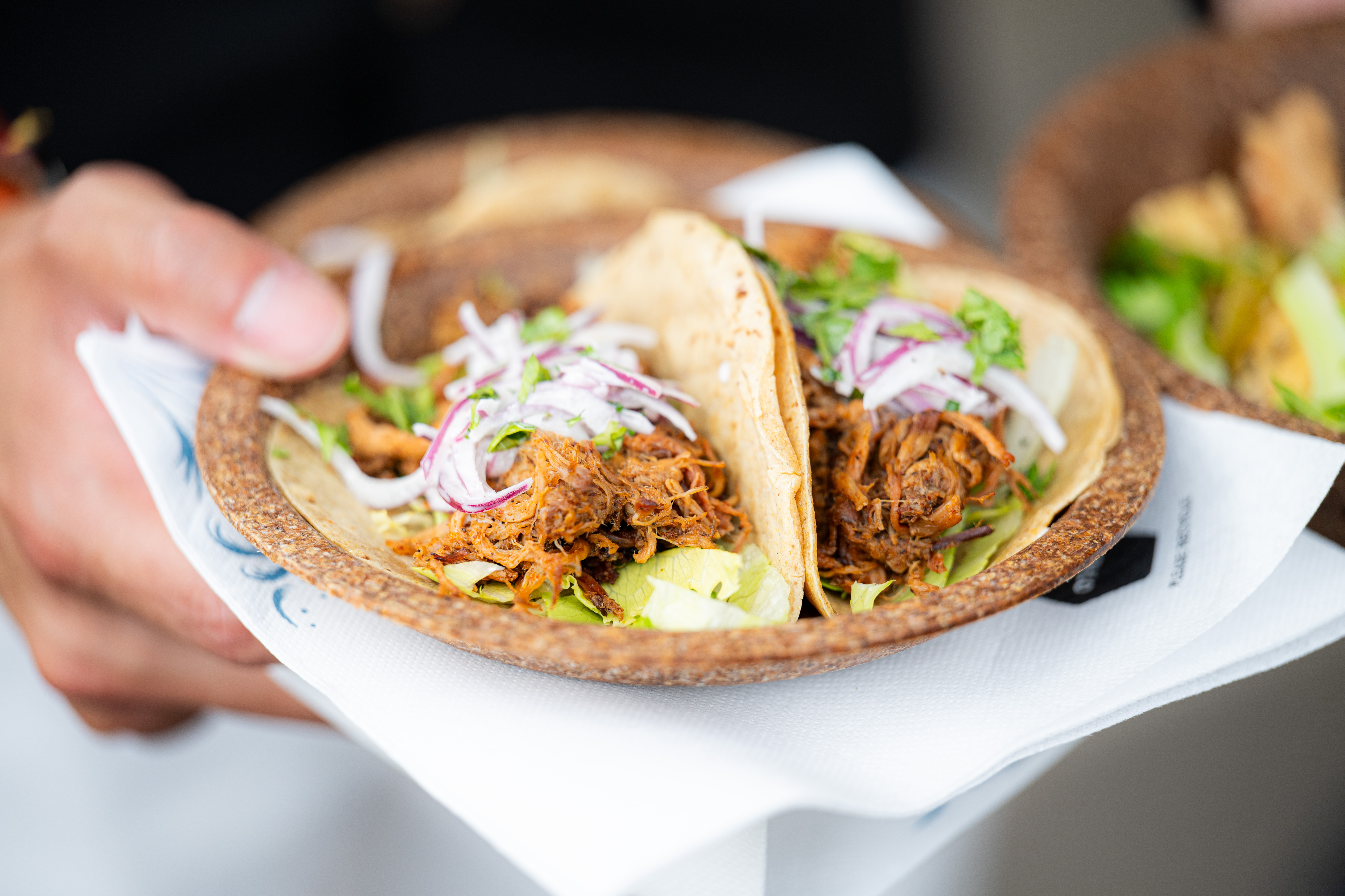 Chef Sara Carillo brings Peruvian soul straight to your hands. Whether it’s the pulled pork anticuchero taco or a butifarra turkey burger, these fiery bites pack vibrant flavor and festival-ready energy. It’s world cuisine at high tempo: bite, dance, repeat.